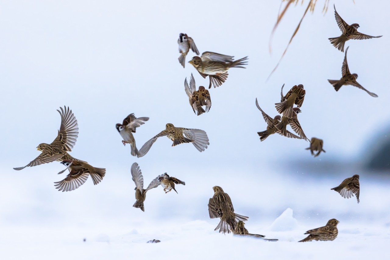 - Na tle zaśnieżonych łanów migoczą skrzydła sójki, a w locie mienią się radosne stada mazurków, potrzeszczy i trznadli.