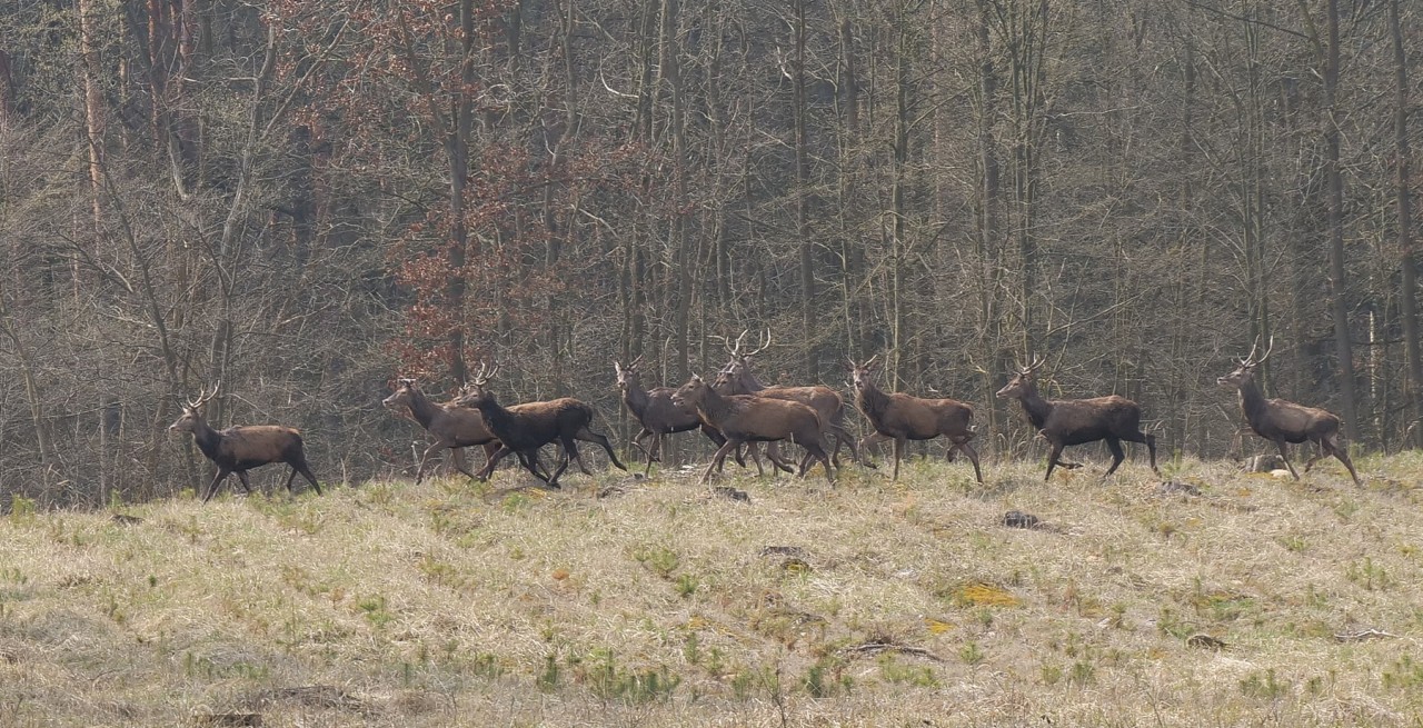 Wiosenny las dla jeleni jest pusty (a grupują się nawet do100 sztuk), brak okrywy z liści, utrudnia bycie niewidzialnym, zwierzęta są bardziej płochliwe zwiększają dystans ucieczki przed człowiekiem.